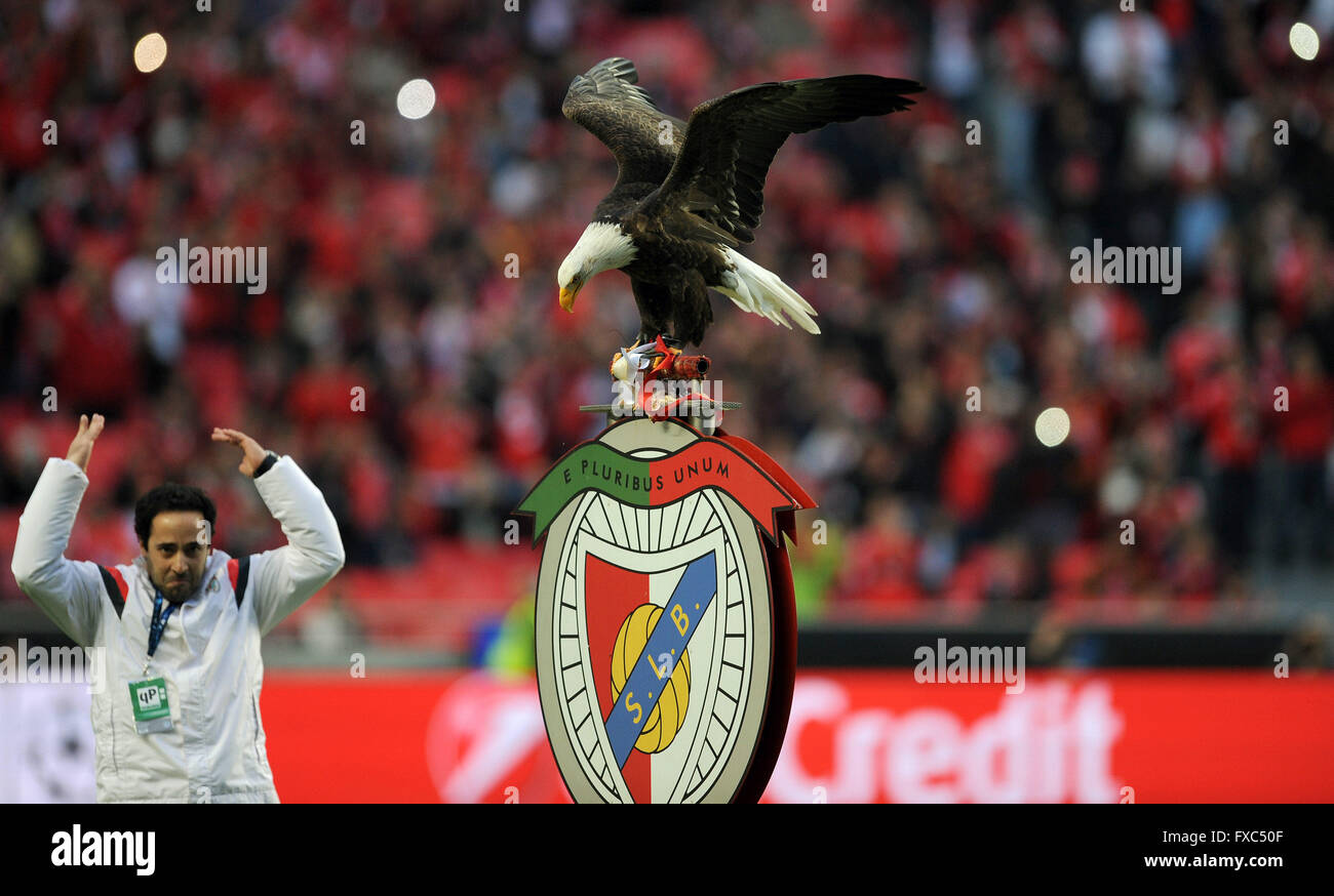 Lisbon Portugal 13th Apr 2016 Benfica Lisbon S Team Mascot An Eagle Flies To The Pitch Prior To The Uefa Champions League Quarterfinal Second Leg Soccer Match Between Sl Benfica And Fc Bayern