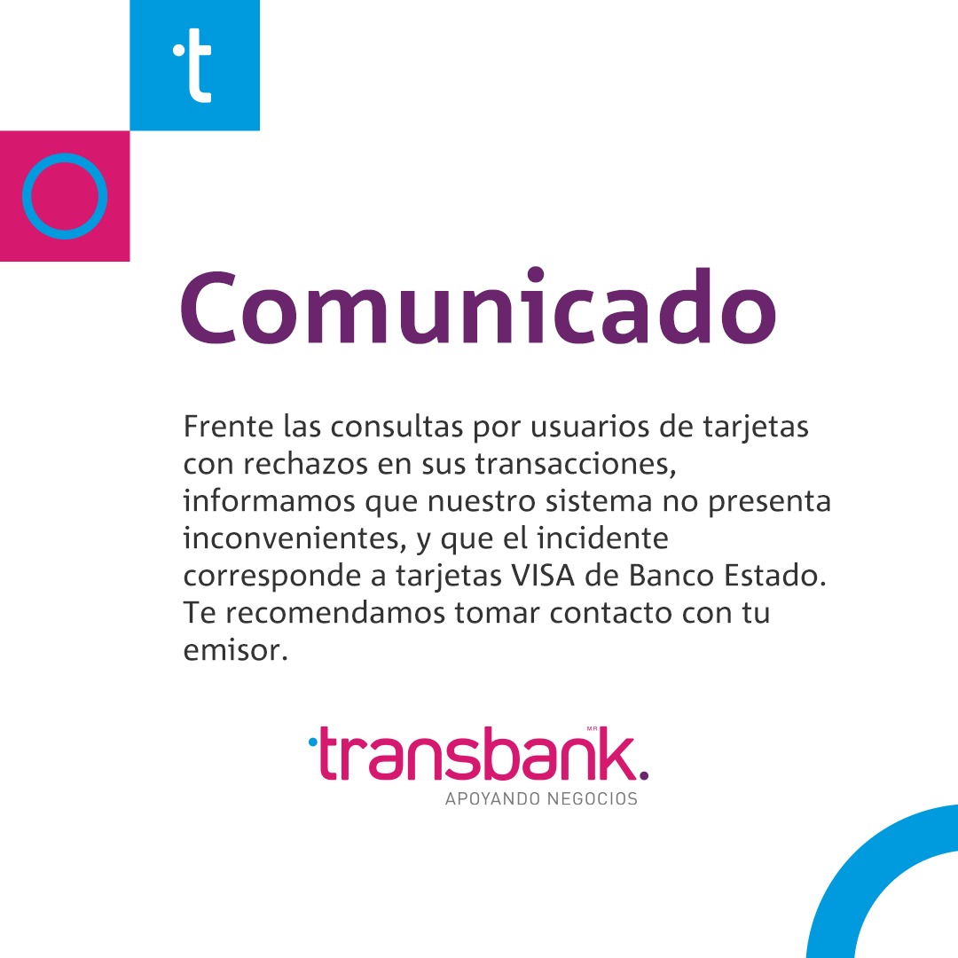 Transbank SA es una empresa de apoyo al giro bancario cuyos socios son las entidades bancarias y financieras más importantes del país. TransBanks Smart bank service that lets you get banking services from any device which has connected to internet anytime 247 hours anywhere. El call center atiende en el siguiente horario.